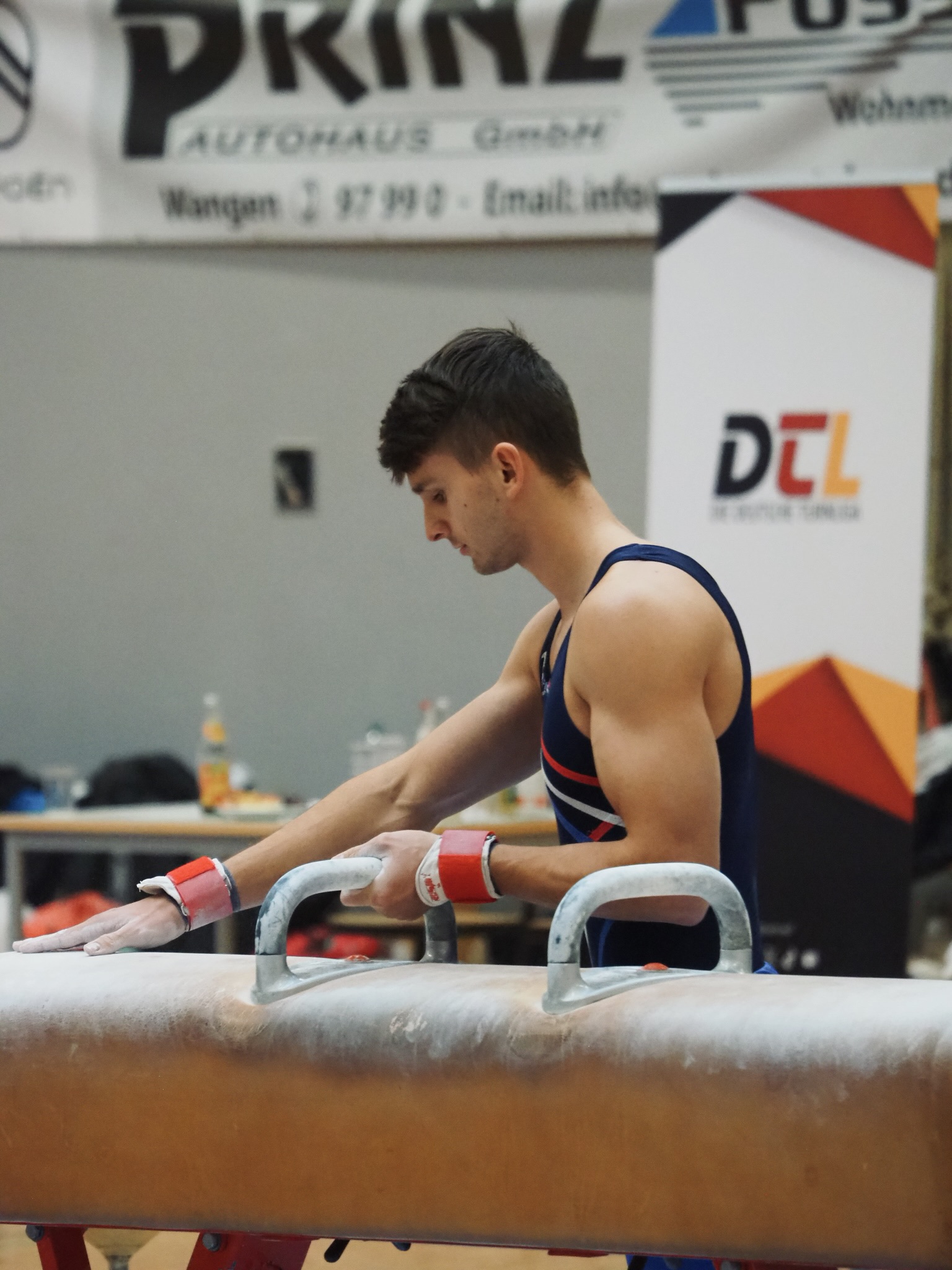 Der TG Wangen/Eisenharz gelang der bessere Start. Manuel Drechsel eröffnete den Wettkampf und setzte die Gegner sofort unter Druck. Mit einer nahezu perfekten Übung in seinem Comeback am Boden, nach langer Bänderverletzung, konnte selbst der eingekaufte österreichische Nationalturner Martin Miggitsch nichts entgegensetzten. Drei Punkte für die TG. Auch die anderen Turner der Gastmannschaft kamen sturzfrei durch ihre Übung. Schlussendlich konnte Unterföhring jedoch den Boden, auch danke der souveränen Übung des Spaniers Pablo Marin Ogalla, knapp für sich entscheiden. Am Pauschenpferd drehte sich das Blatt. Nico Steinhauser und Pascal Schober punkteten hoch und somit konnte das Gerät mit 11 zu 4 gewonnen werden. An den Ringen zeigt sich die Ausgeglichenheit der Mannschaft. Das Gerät endete mit einem Unentschieden. Nach der Habzeitpause ging es ans Paradegerät der Unterföhringer. Aufgrund der schwierigeren Übungen der Heimmannschaften gewann diese erwartungswert deutlich das vierte Gerät. Der Barren war dann wieder in der Hand der TG Wangen/Eisenharzer. Vor dem Letzten Gerät, dem Reck, stand es 32:28. Ab jetzt wurde aus dem hoch spannenden Wettkampf, indem die Führung ständig wechselte, ein Krimi. Zwar waren die Münchner die favorisierte Mannschaft am Reck, jedoch konnten sie dem Druck nicht standhalten. Nach Fehlern auf Seiten der Heimmannschaft, welche zu langen Streitereien zwischen dem gegnerischen Trainer und dem Kampfgericht führten, konnte der Zwischenstand vor dem letzten Turner nicht knapper sein 36:37. Ein Punkt Vorsprung für die TG Wangen/Eisenharz. Ähnlich knapp wie in den letzten Jahren. Und wieder hieß der letzte Turner für die TG Hannes Müller. Dieser hielt dem enormen Druck stand und turnte seine Übung fehlerfrei und mit Eleganz. Leider der war der Münchner Neuzugang aus der Zweiten-Liga zu gut. Der Wettkampf endete mit 39:37 denkbar knapp. Top Scorer des Tages wurde der Österreicher Martin Miggitsch mit 19 Scorepunkten.