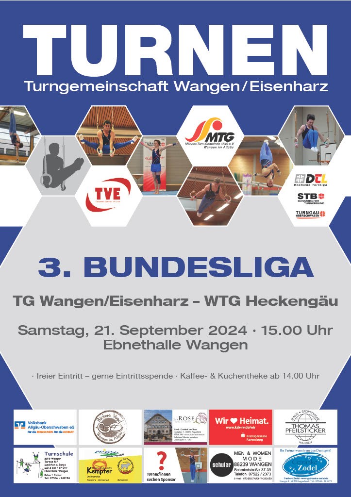 TG Wangen/Eisenharz – WTG Heckengäu Sa. 21.09.2024 · 15 Uhr · Ebnethalle Wangen