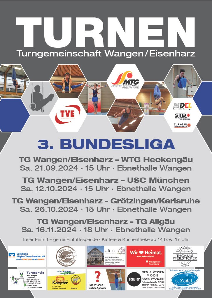 TG Wangen/Eisenharz – TG Allgäu Sa. 16.11.2024 · 18 Uhr · Ebnethalle Wangen